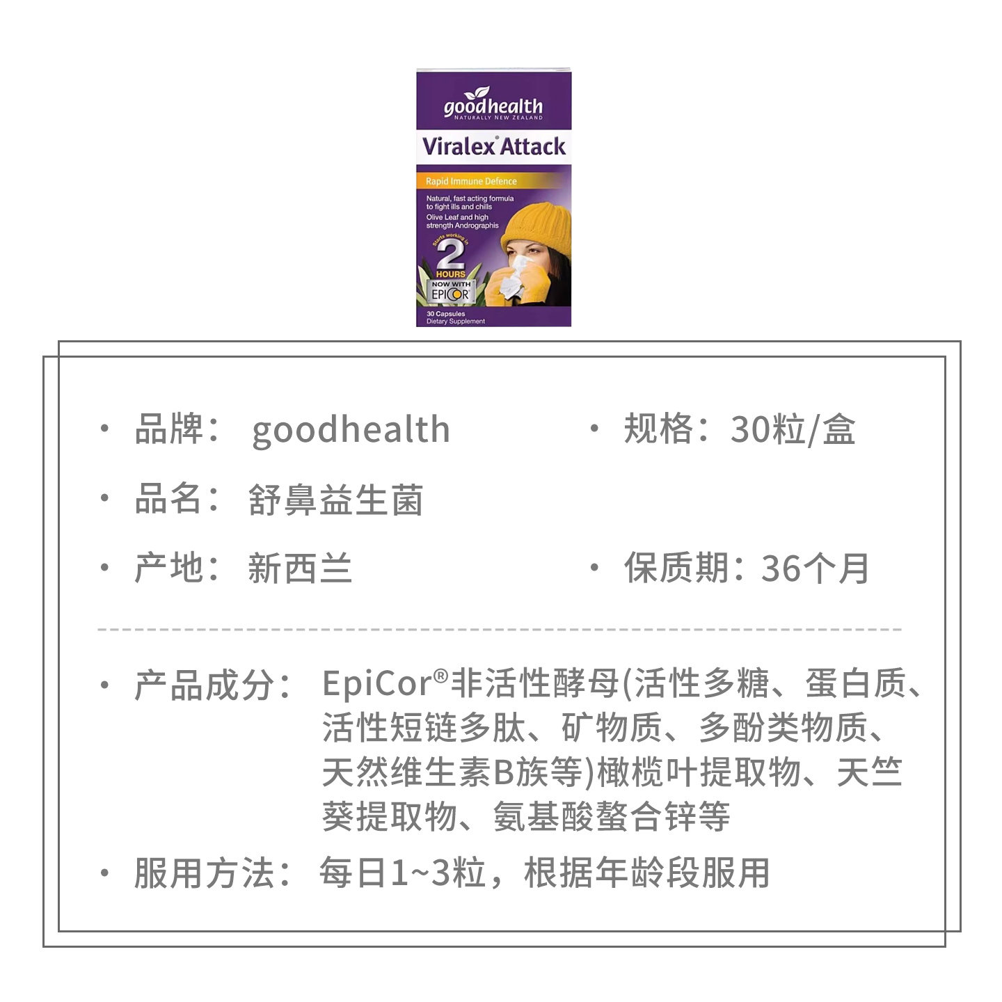 📚 新西兰好健康goodhealth Viralex舒鼻免疫益生菌30粒舒疹加强过敏
