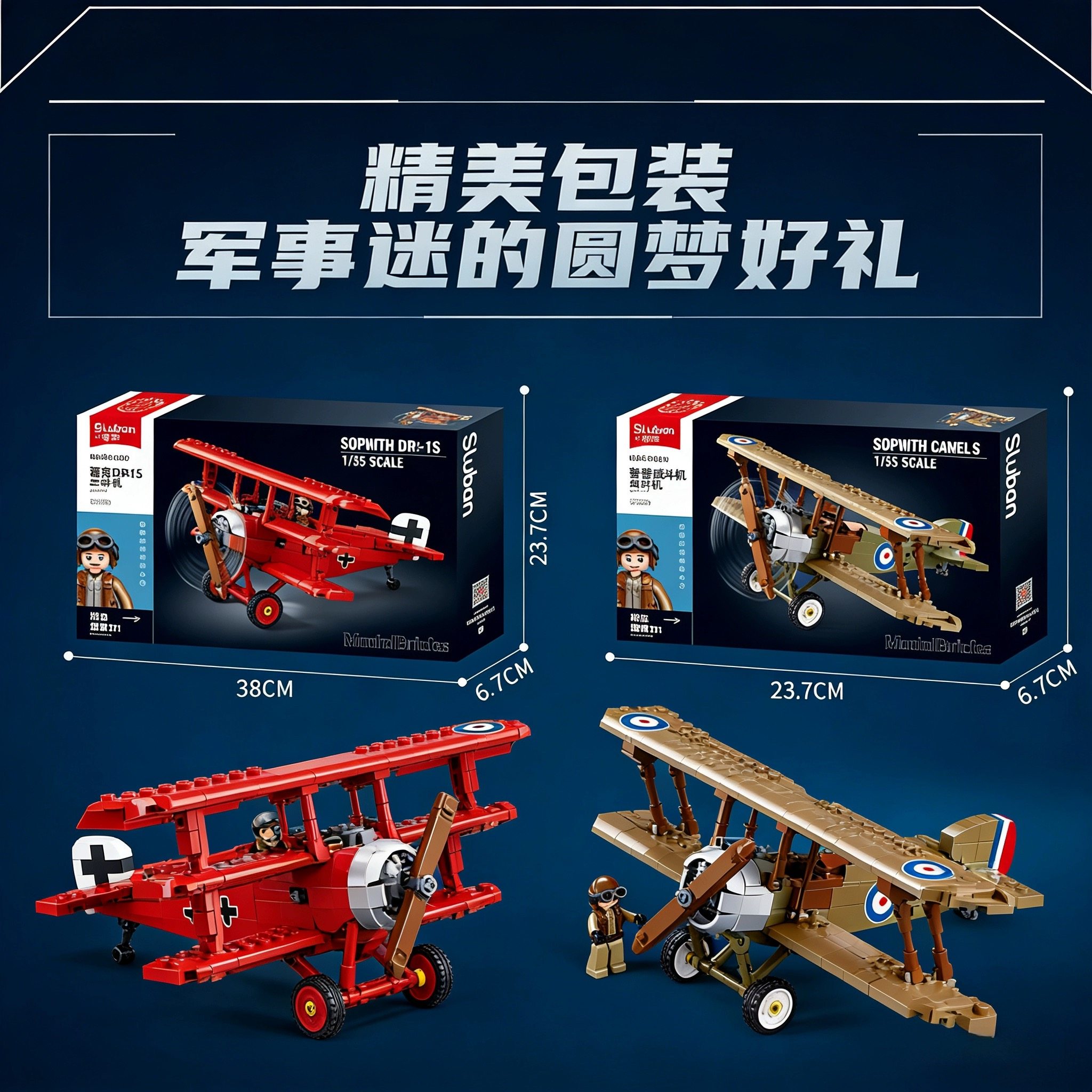 📚 红男爵的福克Fokker DrIs单座三翼战斗飞机德国一战模型拼装玩具
