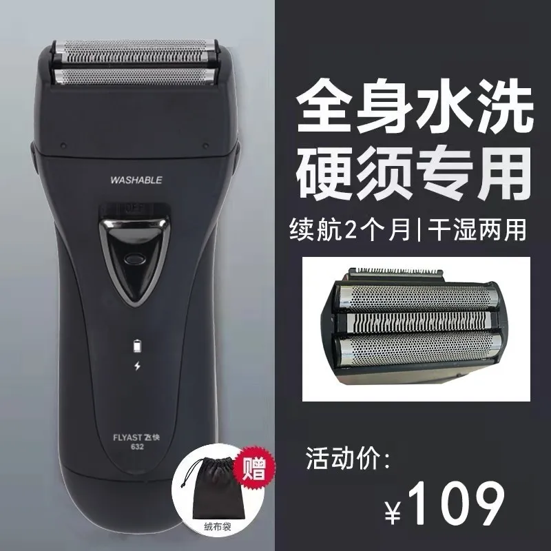 📚 飞快科技电动剃须刀632往复式刮胡刀全身水洗大功率硬胡子车载正