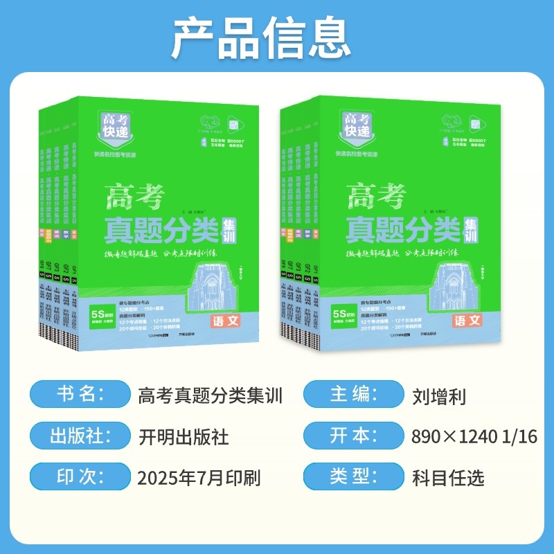这款资料书按照高考真题的分类,对物理、数学、语文、英语、化学、生物、政治和历史等各个科目进行了细致的汇编。无论你是文科生还是理科生,都能在这里找到适合自己的真题。