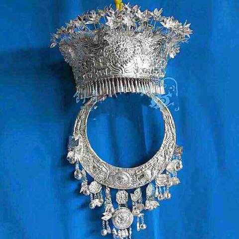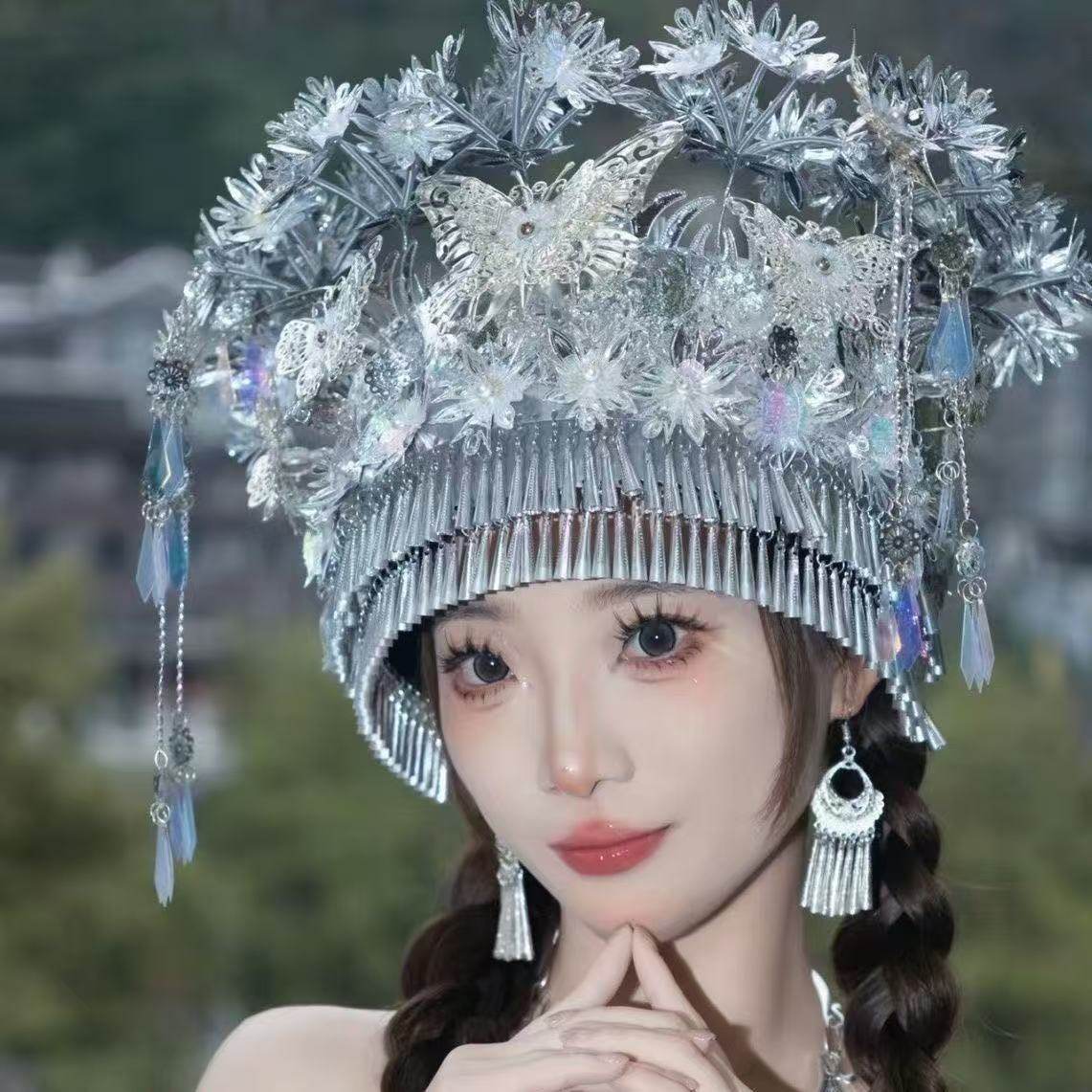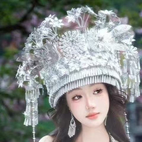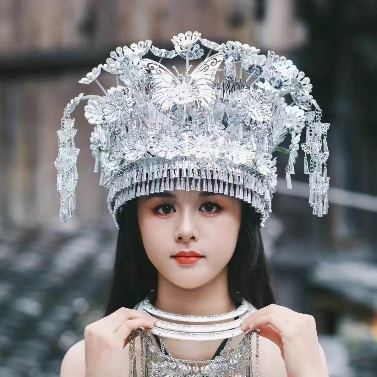 📚 新款贵州苗族服装银饰头饰舞台演出服装帽子项圈耳环手链项链帽子