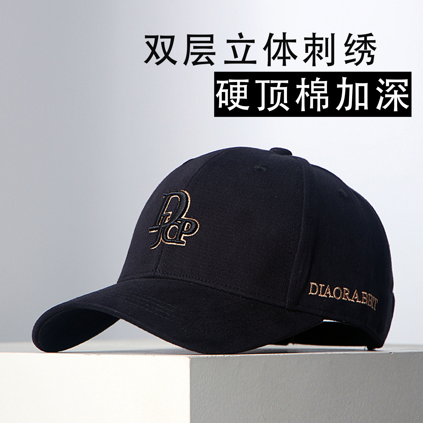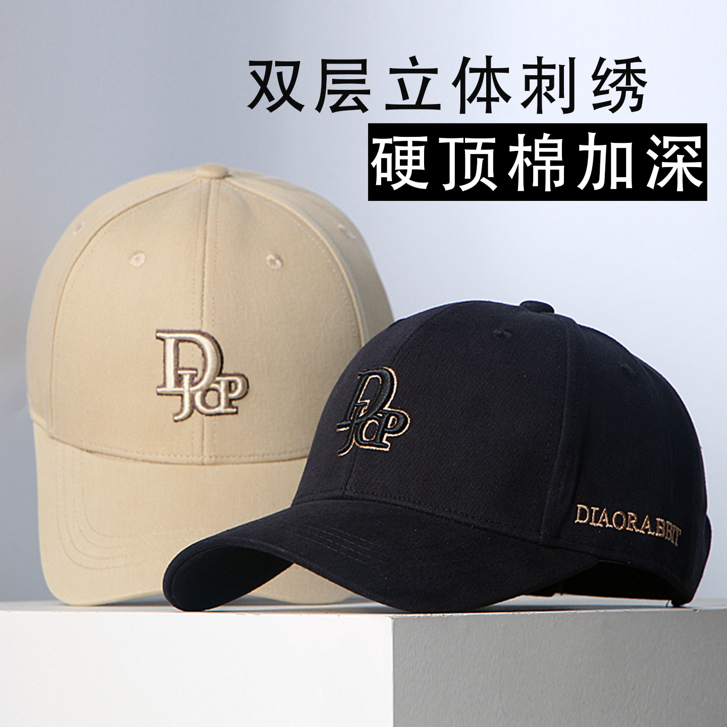 📚 双层立体刺绣帽子男女通用时尚韩版潮鸭舌帽硬顶加深棒球帽显脸小
