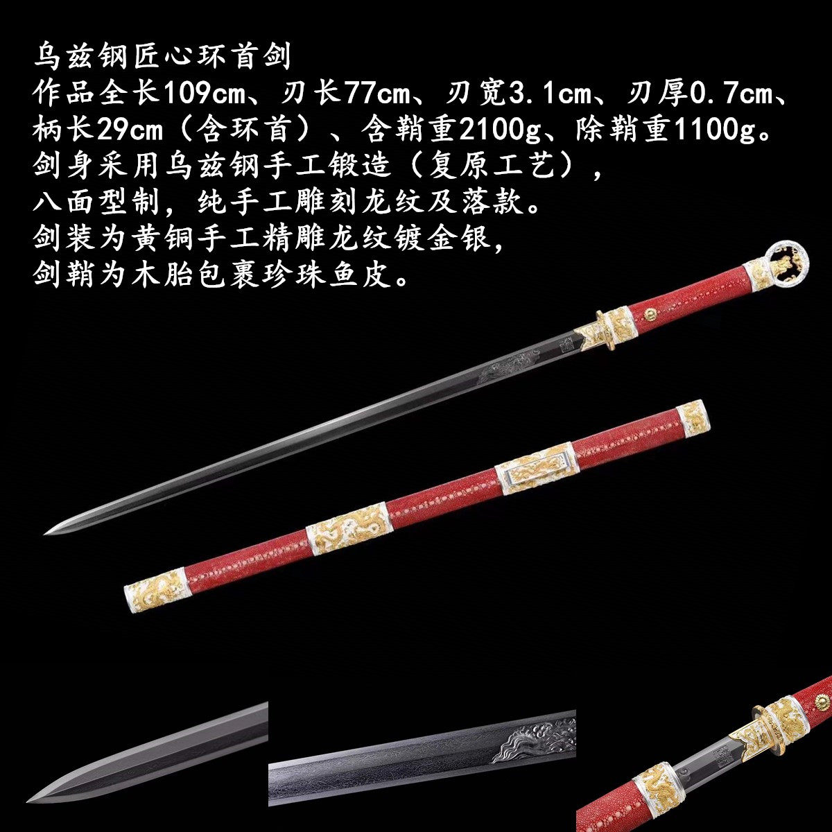 📚 新疆包邮特殊定制乌玆钢匠心环首剑龙泉收藏宝剑纯手工长剑未开刃