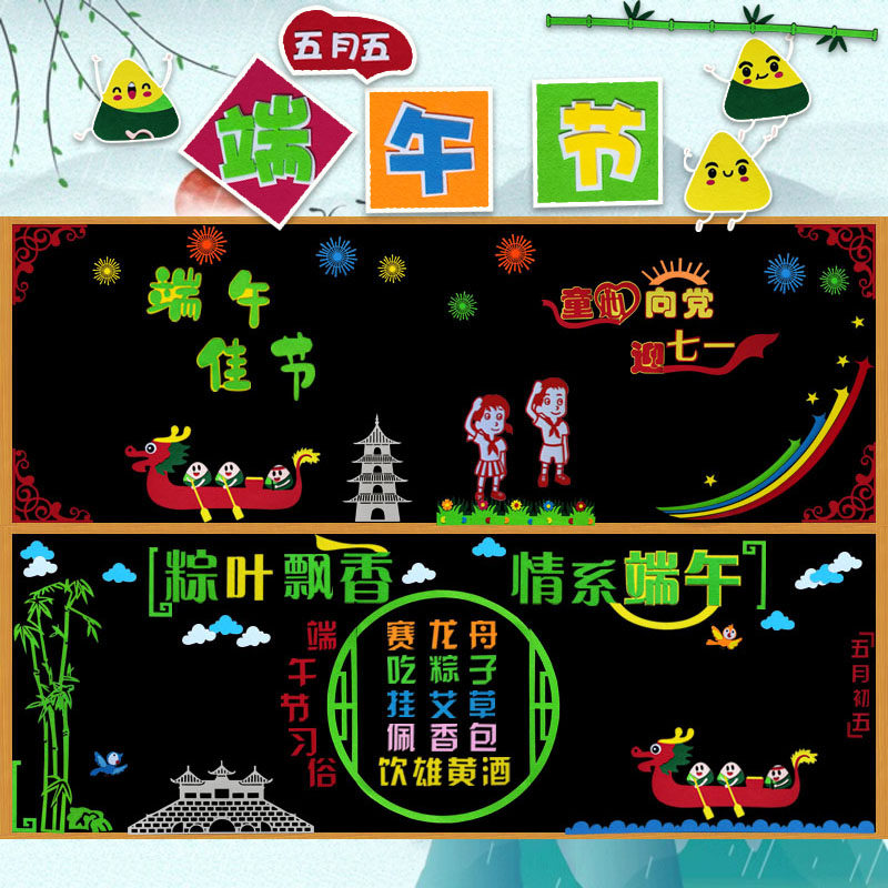 📚 端午节黑板报装饰墙贴小学传统节日宣传板报教室布置幼儿园文化墙