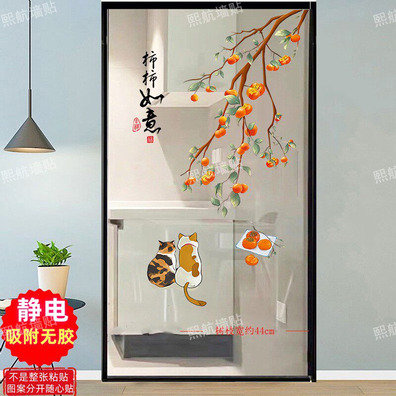 📚 免胶静电玻璃贴纸单门防撞贴可爱窗花门贴纸乔迁装饰高级感双面