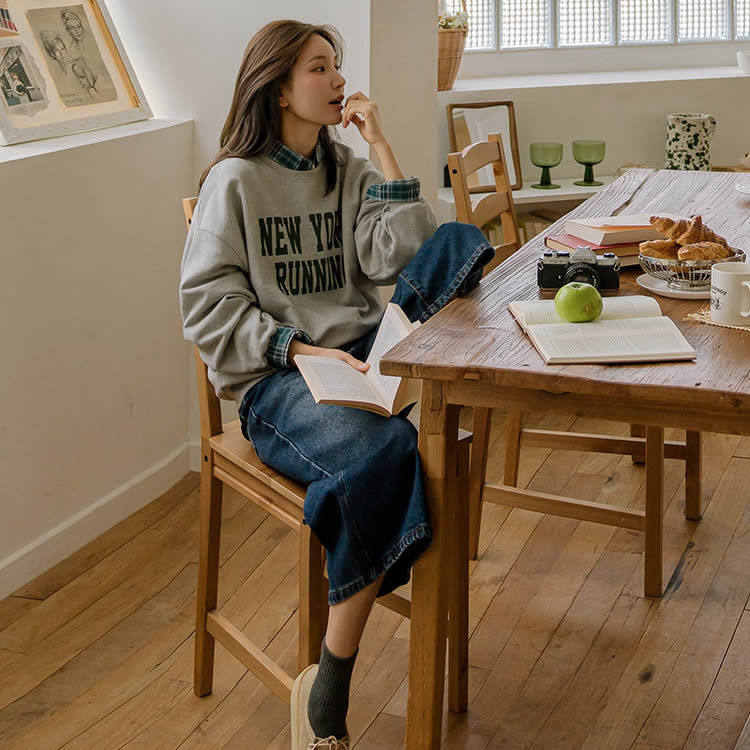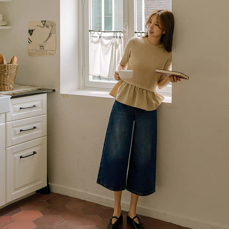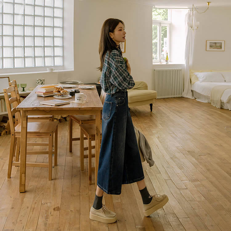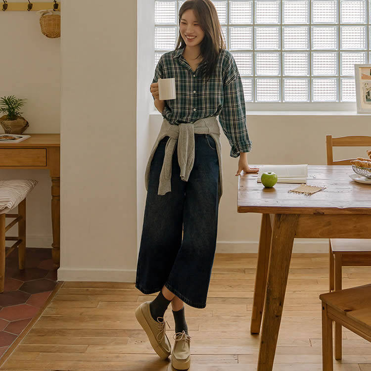 📚 时尚起义韩国甜美2025秋新复古美式宽松阔腿8分牛仔裤jo25082811