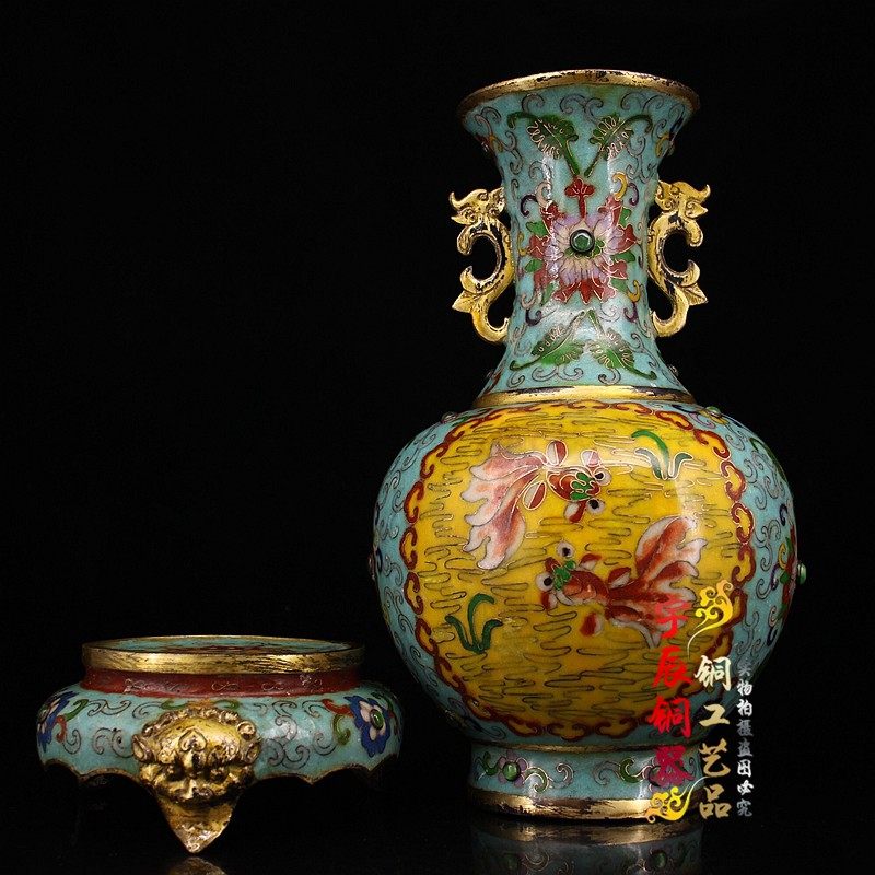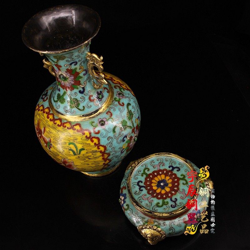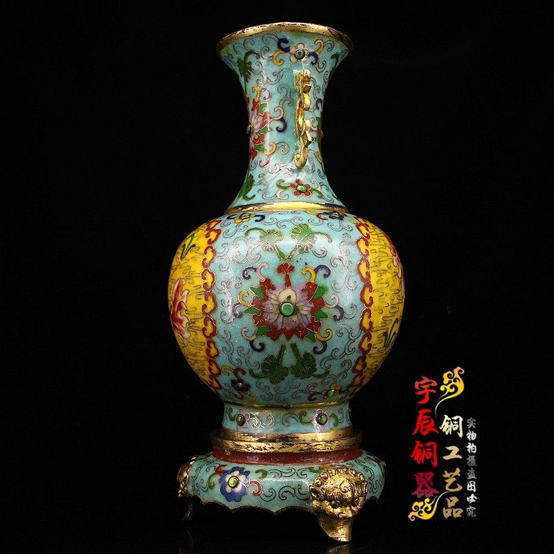 📚 古玩收藏纯铜景泰蓝花瓶家居玄关装饰工艺品摆件珐琅彩花瓶带底座