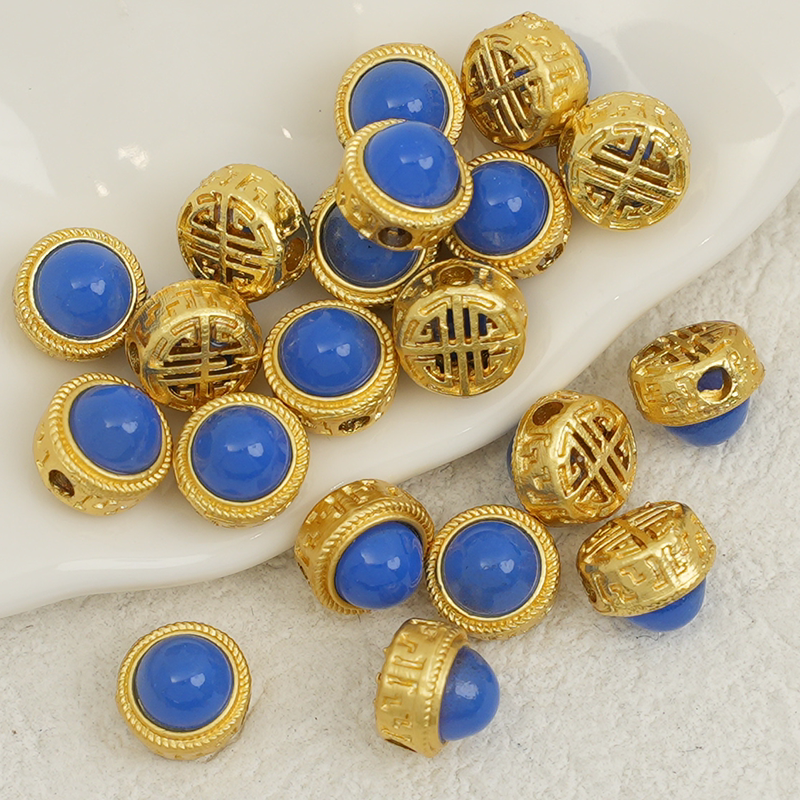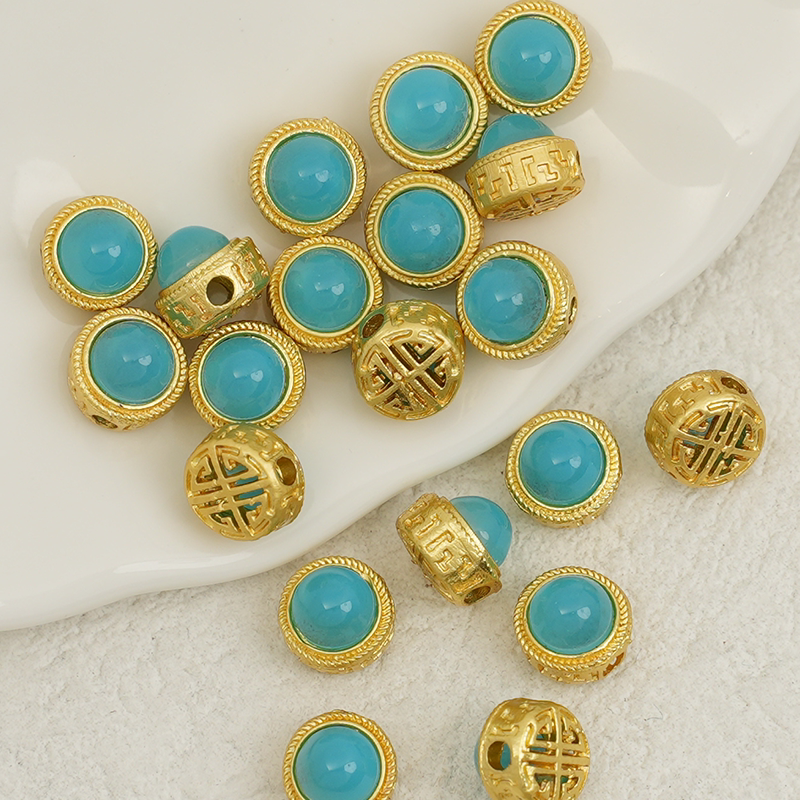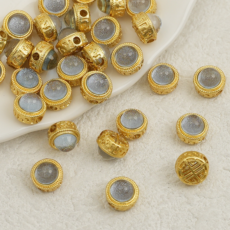 📚 保色铜镀18K哑金镶嵌仿天然水晶猫眼星空粉色多孔隔珠diy饰品配饰