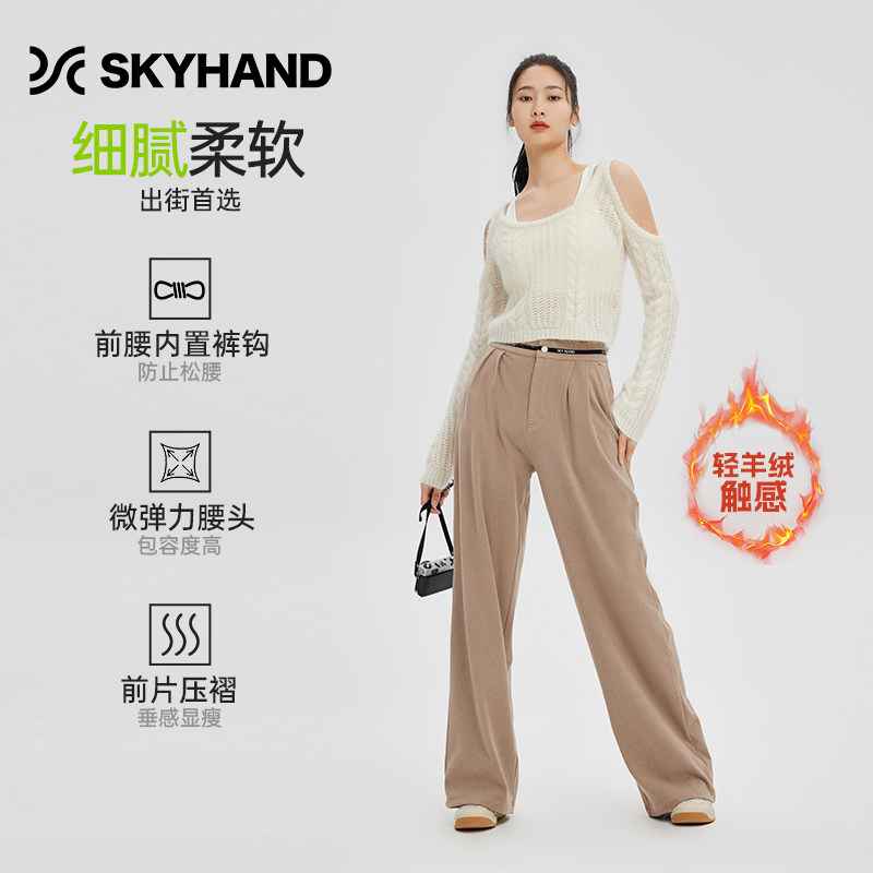 📚 SKYHAND运动休闲裤女秋冬垂坠显瘦宽松直筒裤绒感气质舒适长裤