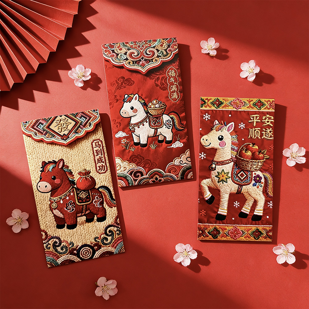 📚 2025新款仿刺绣马年红包利是封过年恭喜发财刺绣红包袋春节压岁包