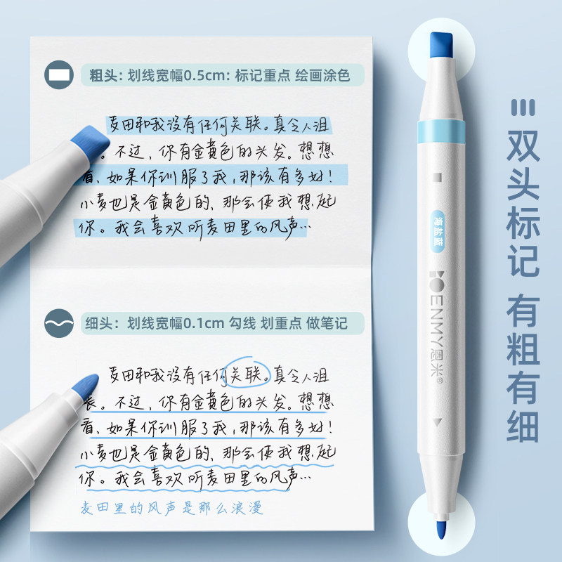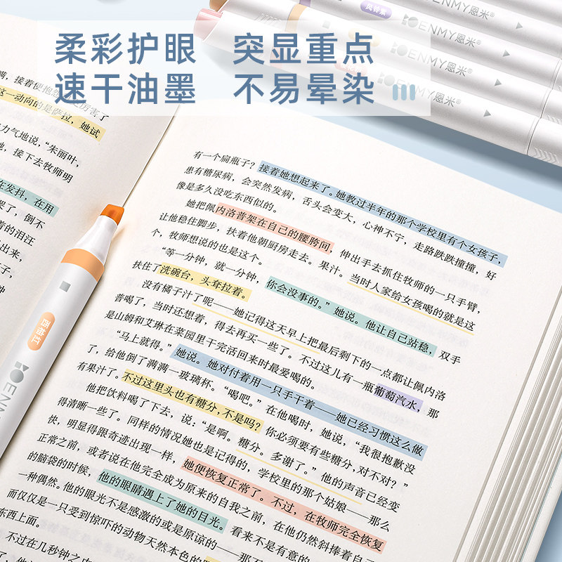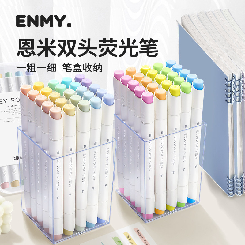 📚 恩米荧光笔双头标记笔彩色记号笔小学生专用划重点做笔记初高中生淡色系儿童无毒不晕染莫兰迪闪光银光萤光笔