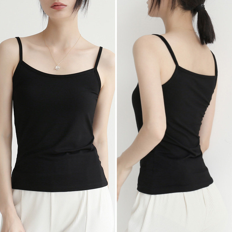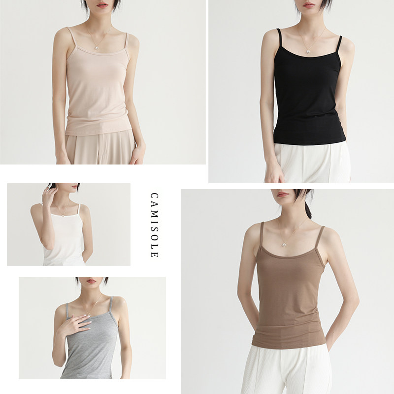 📚 2026新款夏莫代尔吊带背心女夏内搭防走光咖啡色修身卡其打底上衣