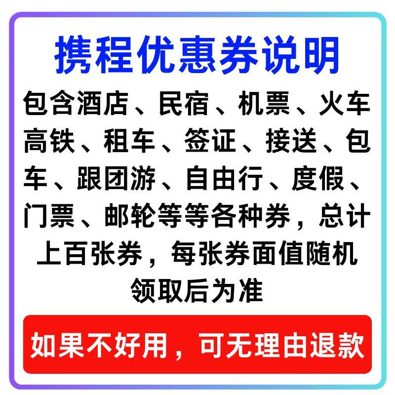 📚 携程旅行机票优惠券国际国内通用券100元大额无门槛立减优惠代金