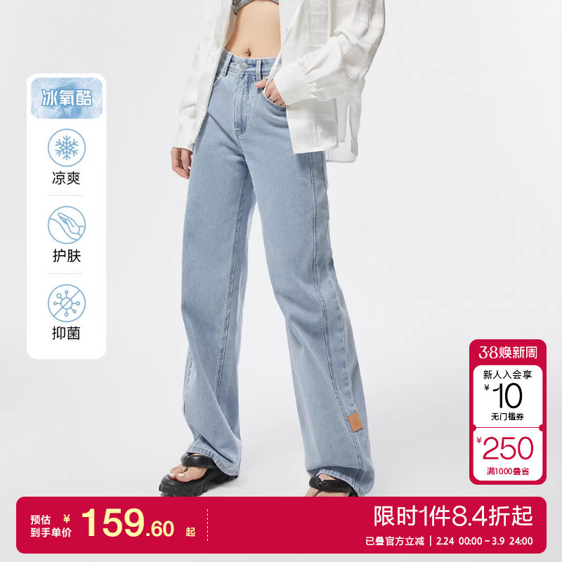 📚 ONLY25夏季新冰氧酷凉感复古高腰阔腿老爹冰皮裤牛仔裤女