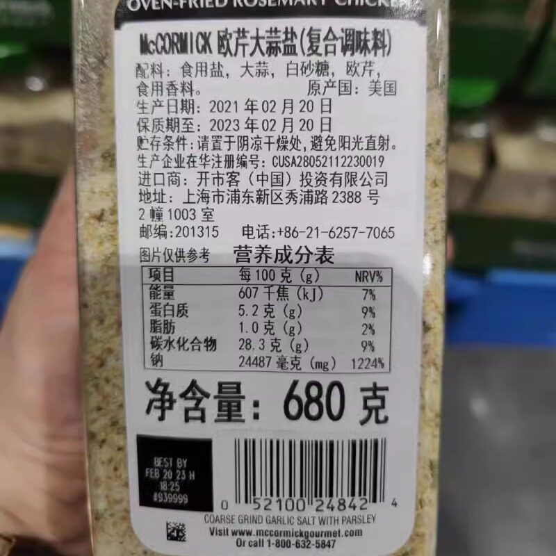 📚 开市客Costco代购 美国MCCORMICK味好美欧芹大蒜盐(复合调味料)