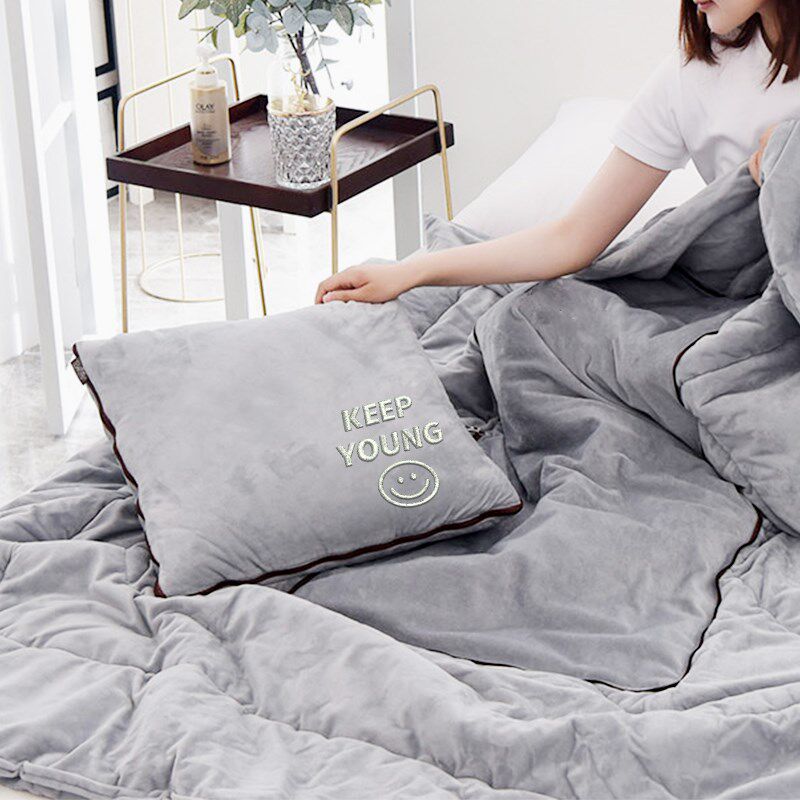 📚 珊瑚绒抱枕被子两用加厚办公室午睡毯车载折叠刺绣可定制空调被子