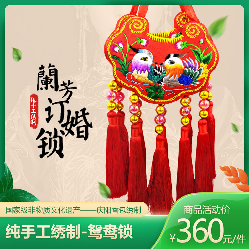 📚 庆阳香包纯手工刺绣鸳鸯锁同心锁订婚专用婚庆婚礼用品结婚礼物