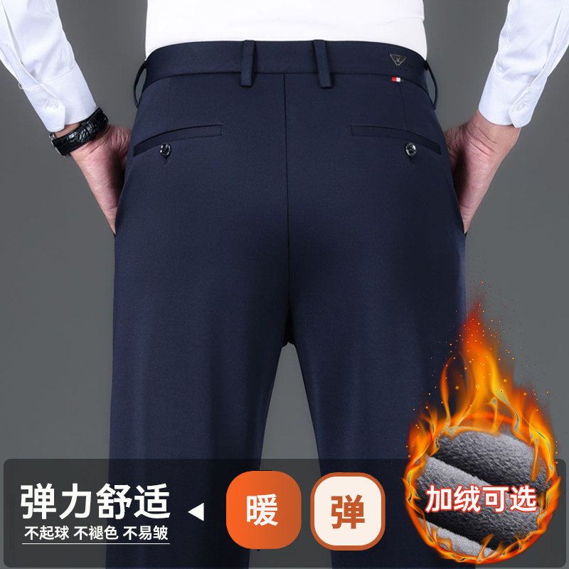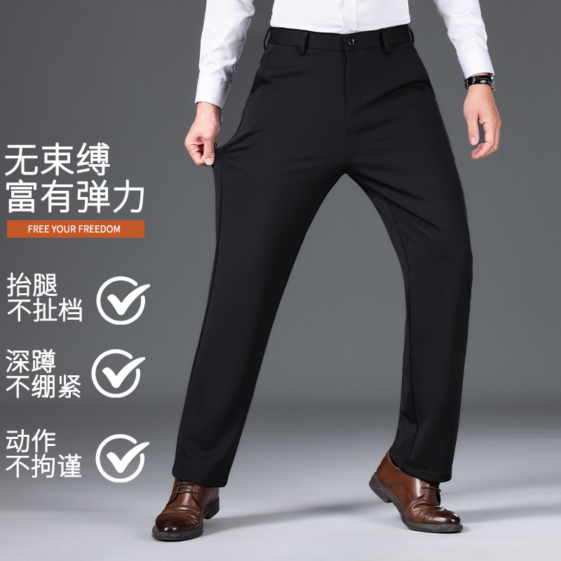 📚 高弹力百搭男士休闲裤免烫弹力直筒长裤商务垂感西裤厚款黑色裤子