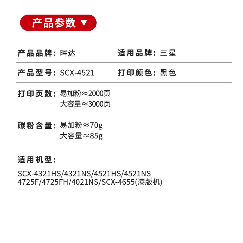 📚 晖达适用三星SCX-4521f硒鼓4321ns ML1610 2010 4521D3打印机4621ns 4021s 4821hn墨盒4521hs D4725A施乐3117