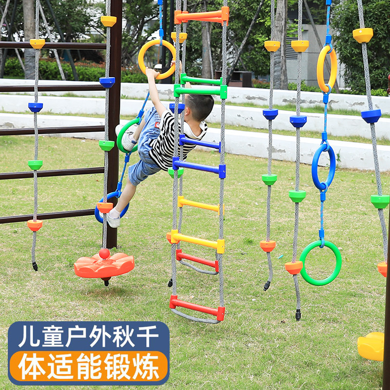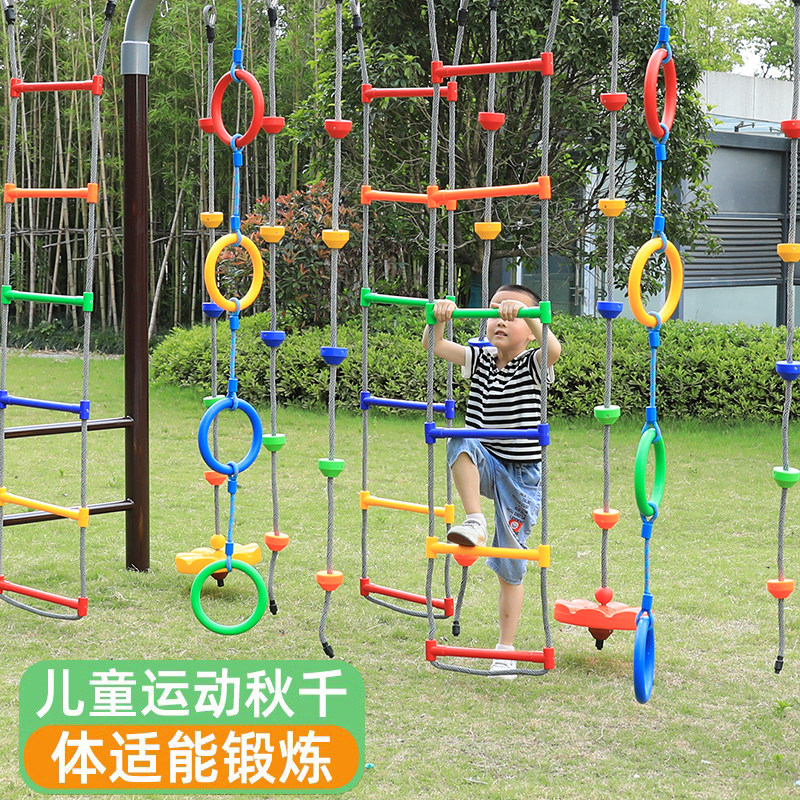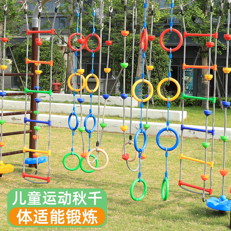 📚 感统体适能训练悬挂秋千幼儿园户外室内运动吊环U型攀爬绳梯圆盘