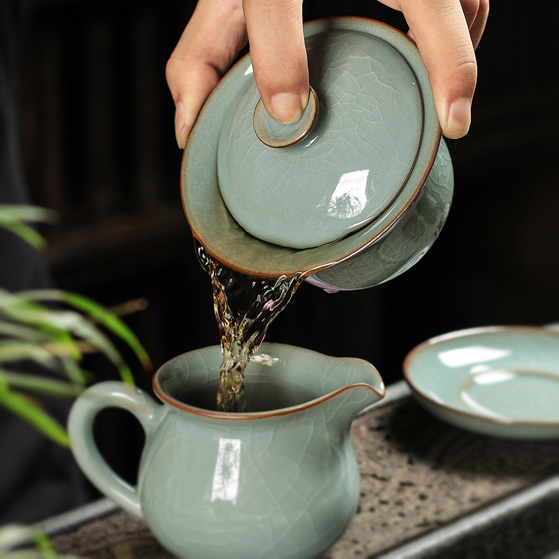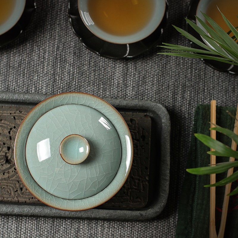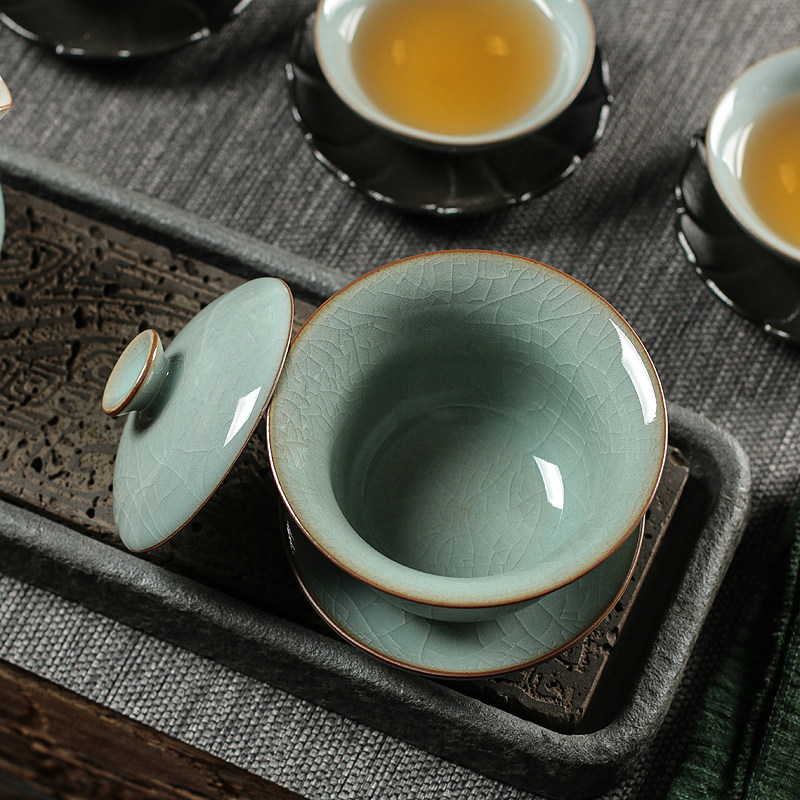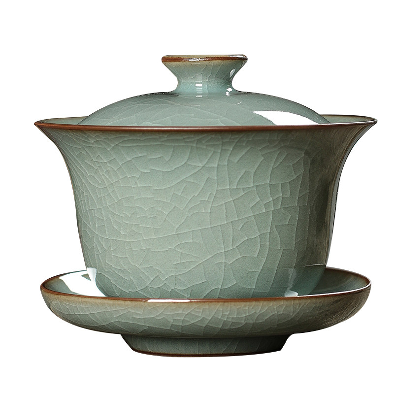 📚 青瓷三才盖碗茶杯大号家用复古泡茶功夫茶具龙泉哥窑冰裂陶瓷单个