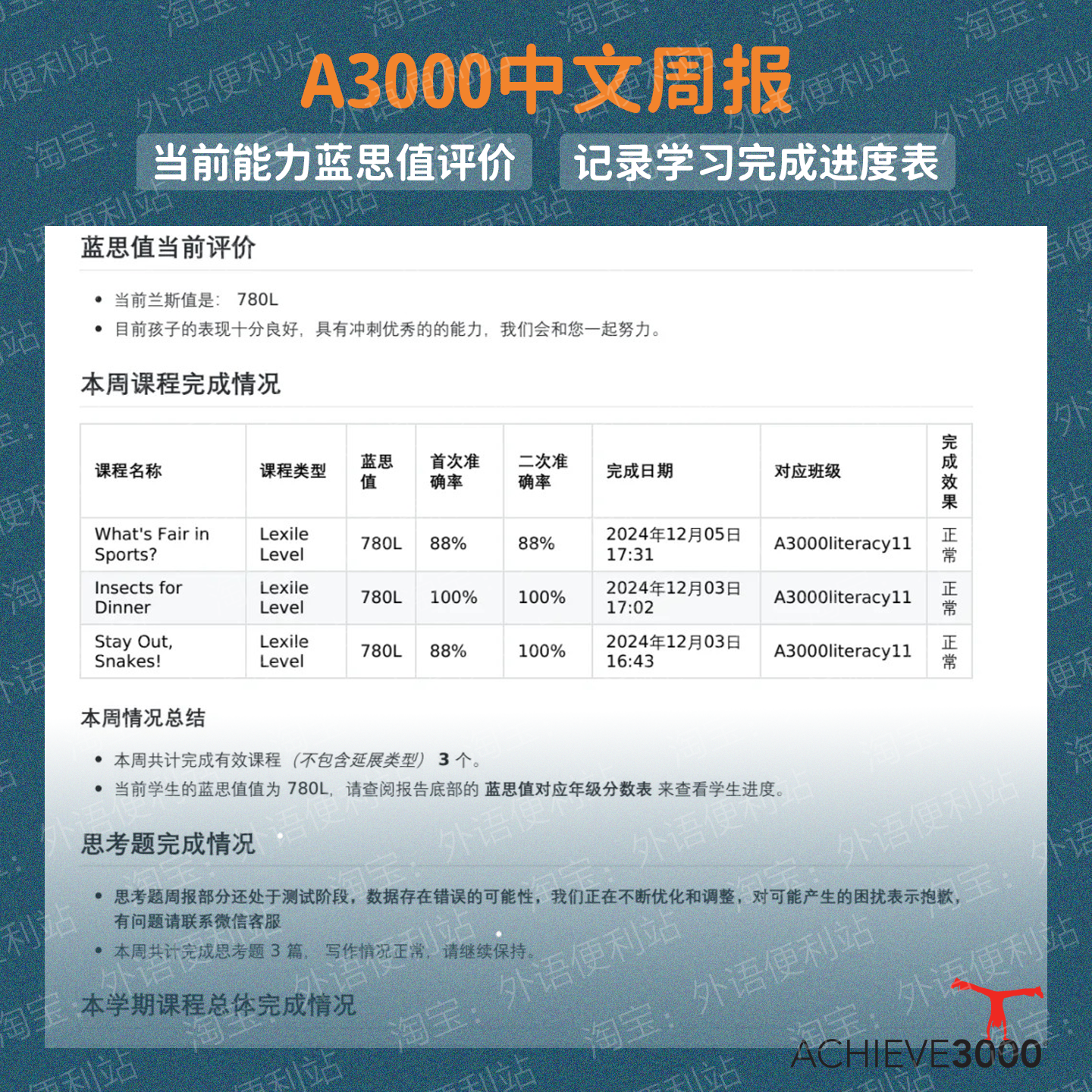📚 Achieve3000 英语蓝思值测试 A3000英语学术阅读写作测试系统 AK3