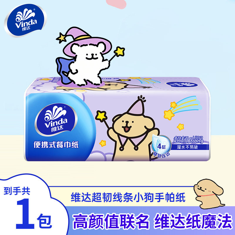 📚 维达线条小狗抽纸4层20抽超韧便携式餐巾纸手帕纸家用加厚旅行装