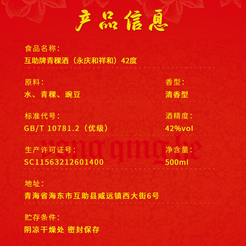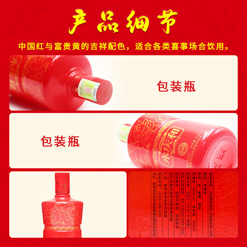 📚 互助青稞酒祥和永庆和42度500ml*6整箱 清香型纯粮白酒婚庆喜庆酒