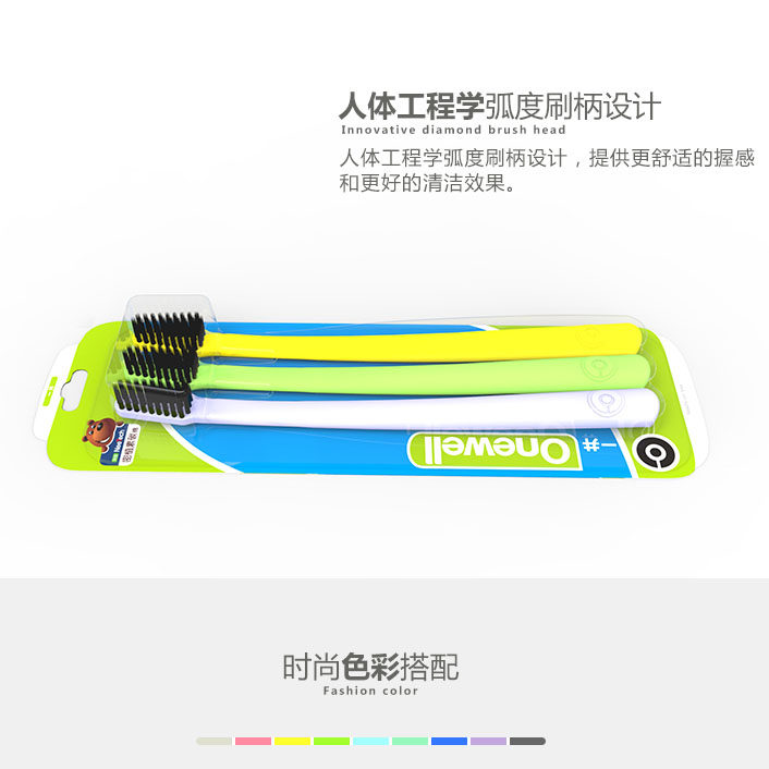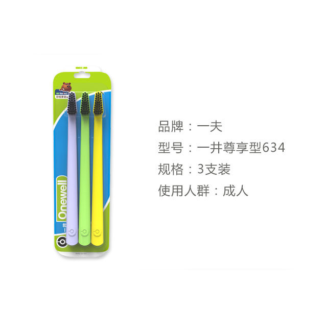 📚 买2送1Eaff一夫一井牙刷634尊享型成人软毛护龈钻石大刷头竹炭