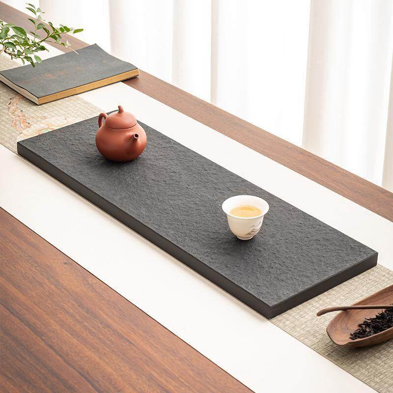 📚 天然乌金石干泡茶台家用简约茶盘壶承石头茶台大小号长方形石托盘