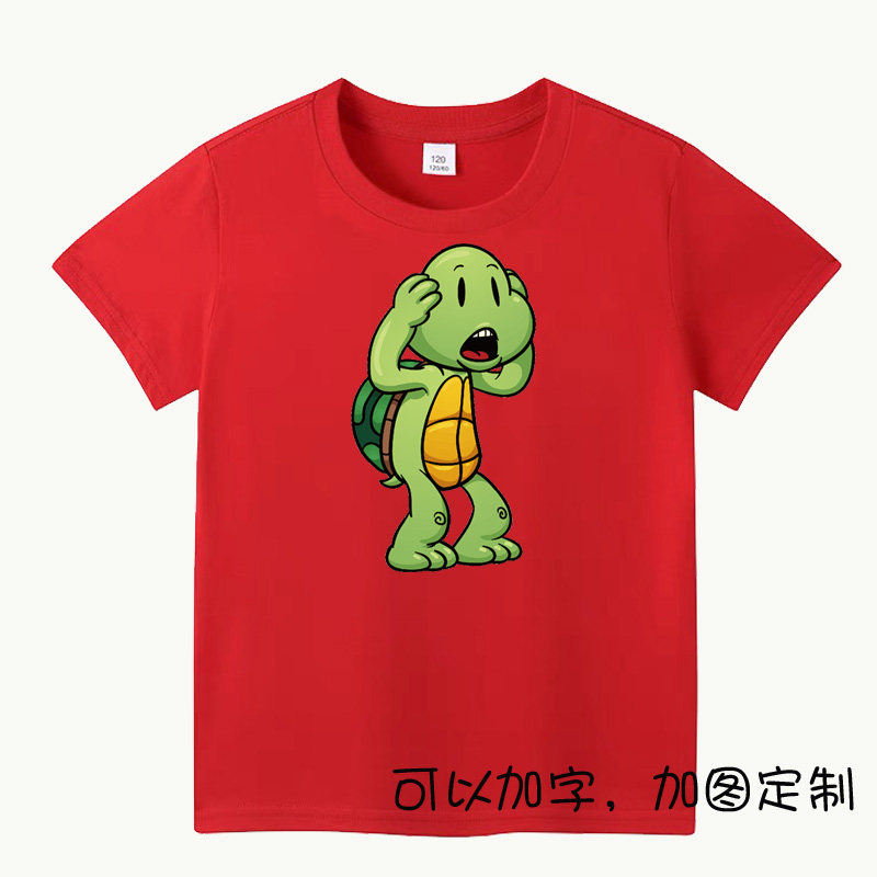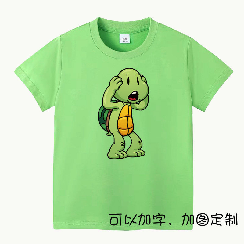 📚 儿童装小乌龟惊恐表情女童t恤短袖3-4-5-6-7-8岁男孩衣服学生半袖