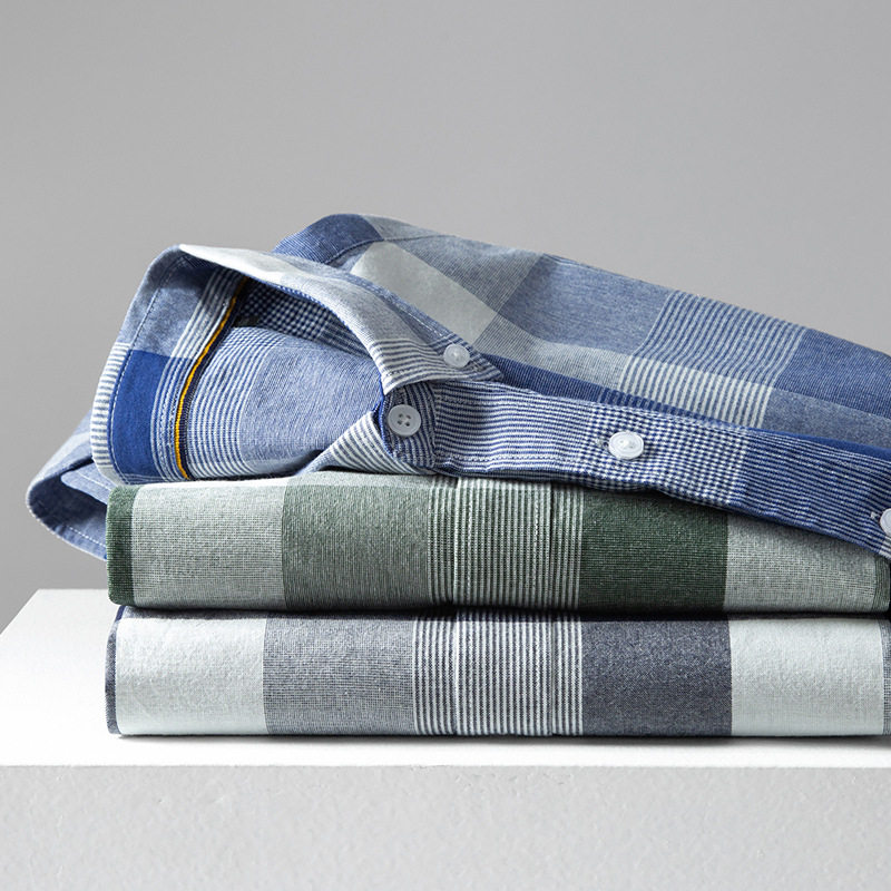 📚 蛮好的人生薛晓舟董子健同款纯棉长袖格子衬衫男休闲牛津纺衬衣男