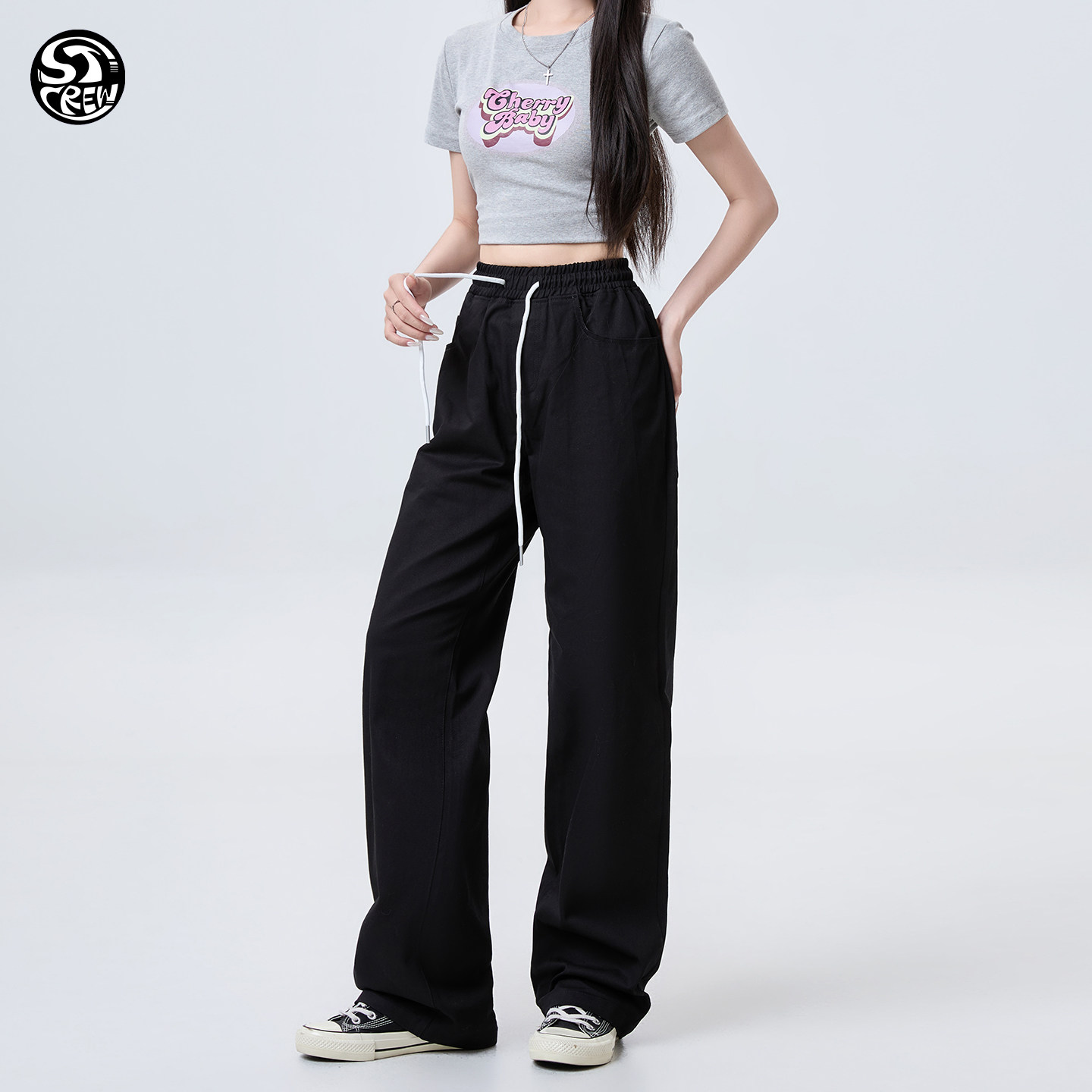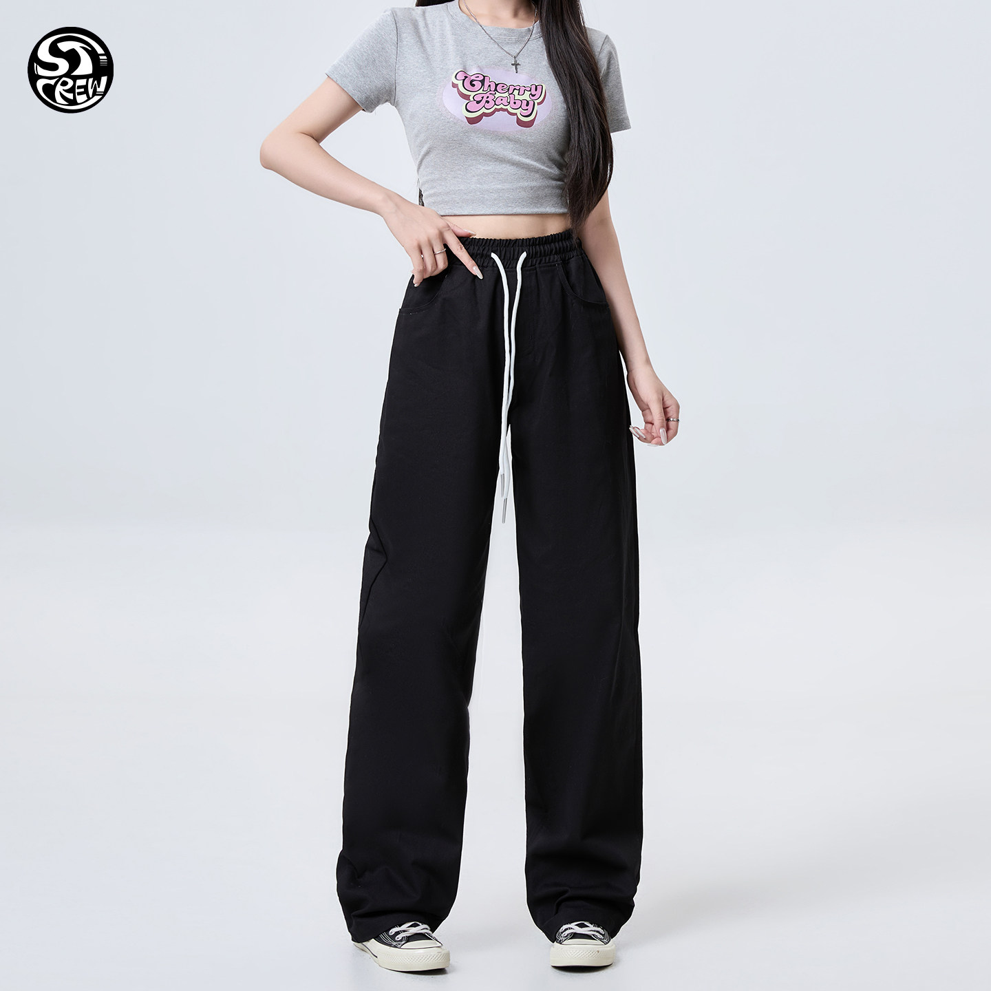 📚 STC美式黑色直筒宽松运动休闲百搭抽绳跳舞男女滑板嘻哈hipho长裤