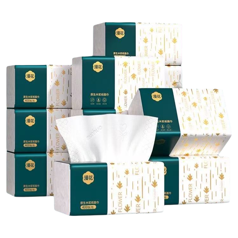 📚 漫花抽纸40大包经济实惠整箱柔韧加厚原木四层餐巾纸可湿水纸巾