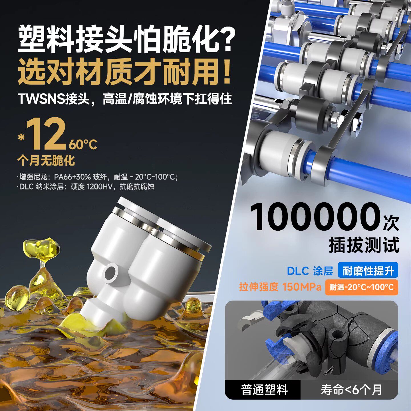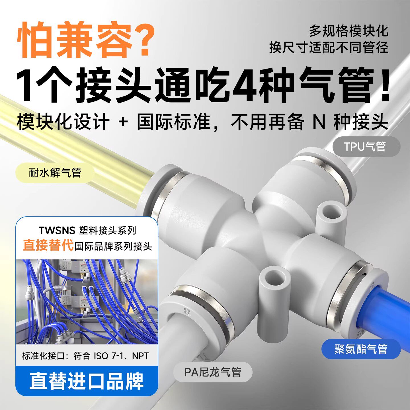 📚 TWSNS台匠山耐斯气动快速接头三通PU直通变径气管接头快插气接头
