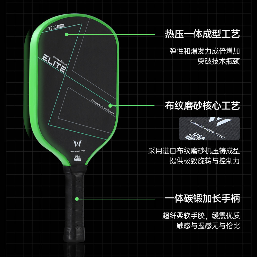 📚 热压匹克球拍板专业T700碳纤维布纹磨砂高端赛事级pickleball全套