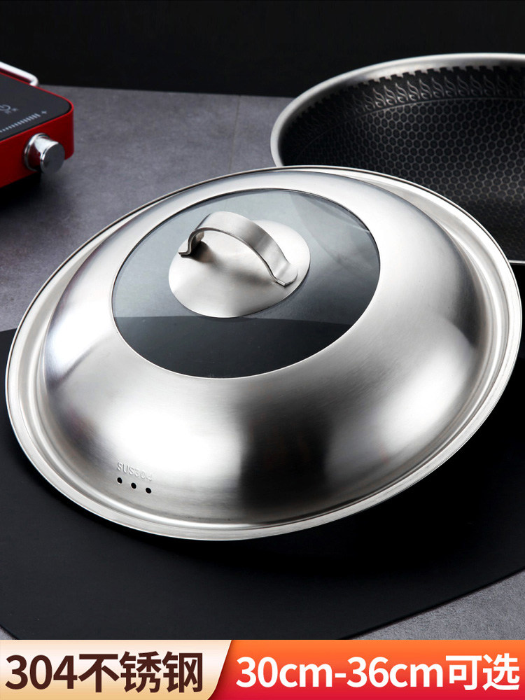 📚 304不锈钢锅盖家用通用炒锅铁蒸锅32cm盖子30高盖大34寸加高36cm