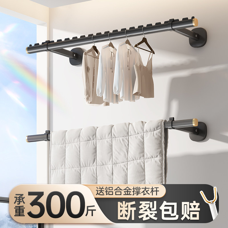 📚 侧装晾衣杆折叠i晾衣架墙上固定阳台晒衣杆一根防风侧方侧边凉衣
