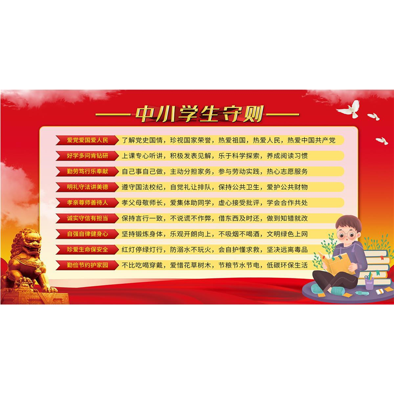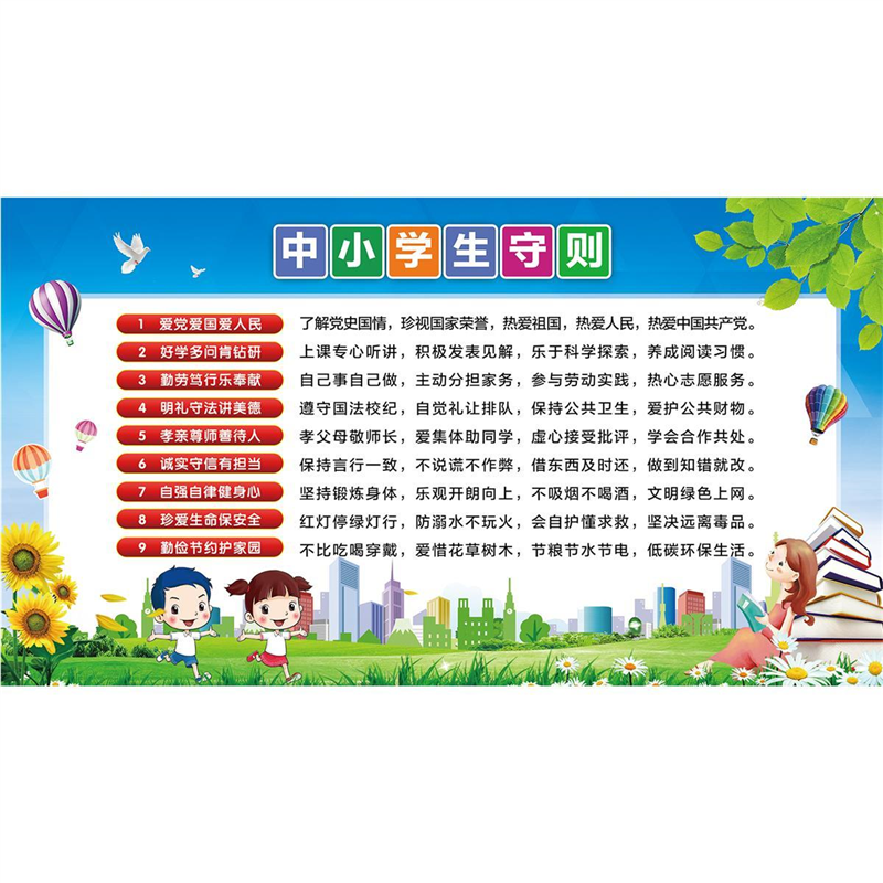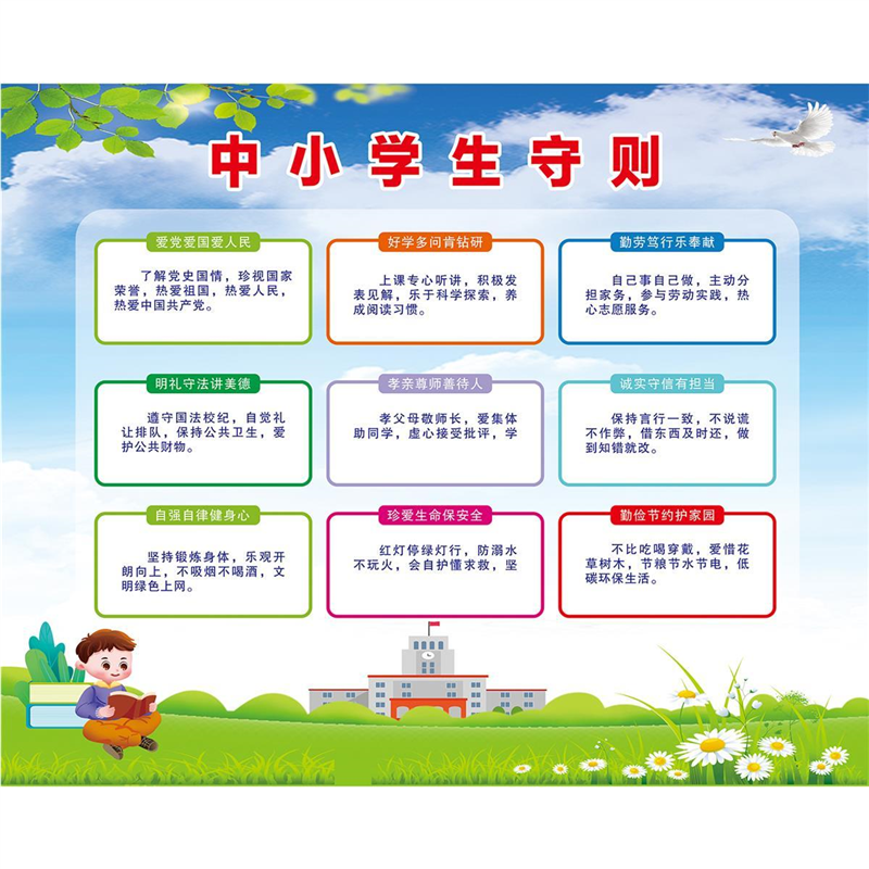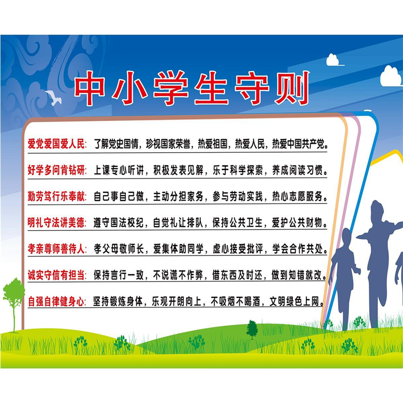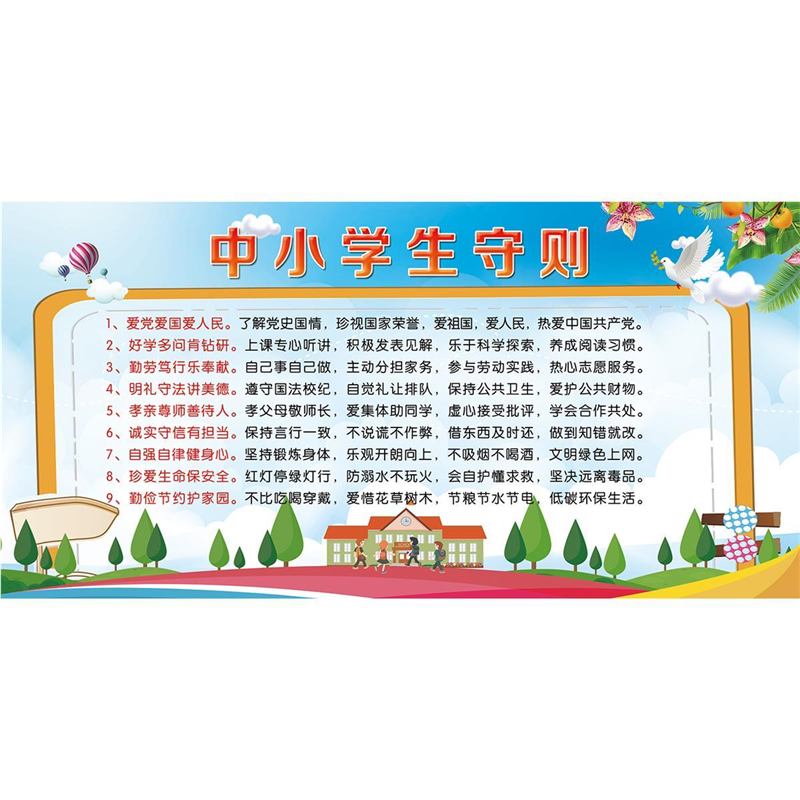 📚 中小学生守则海报展板墙贴墙纸装饰画KT板中小学生守则