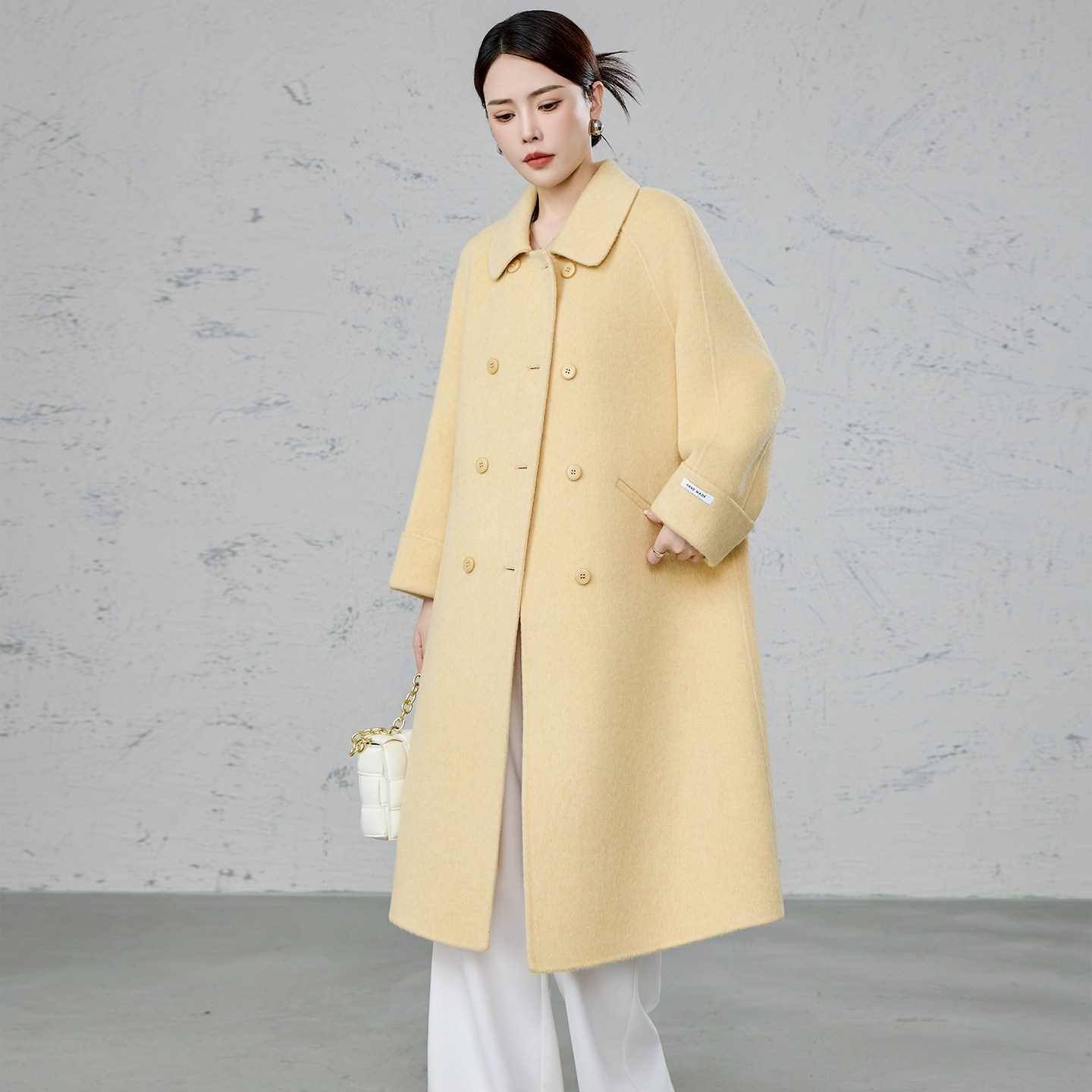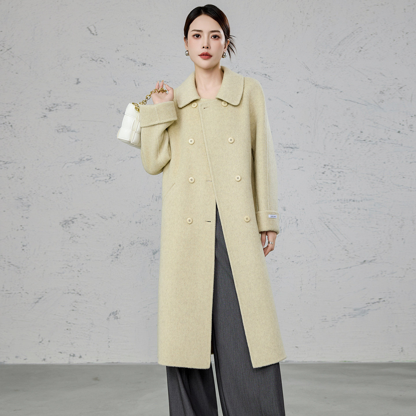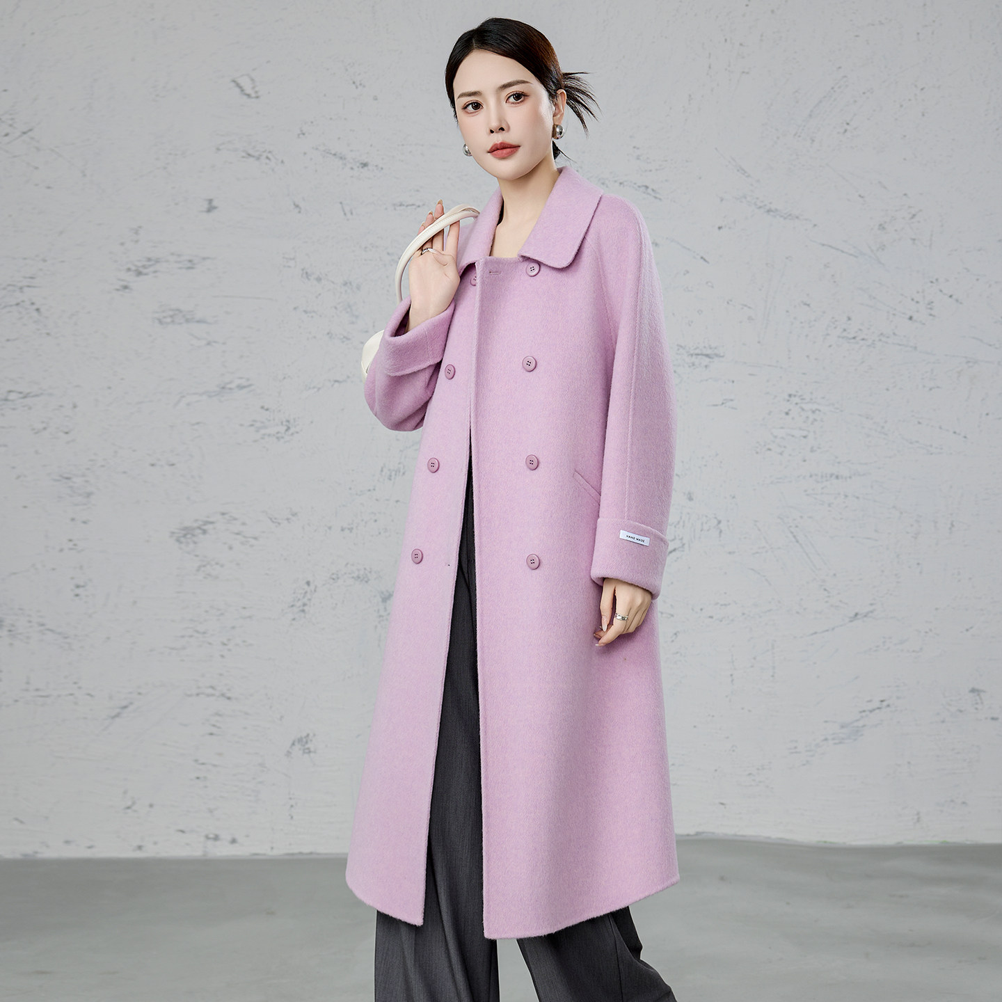 📚 双面羊绒大衣女中长款2025秋冬新款韩系双排扣减龄小个子毛呢外套