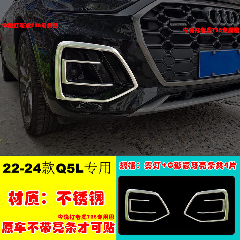 📚 22-25款奥迪Q5L前脸改装中网框亮条雾灯框獠牙车身用品专用装饰条
