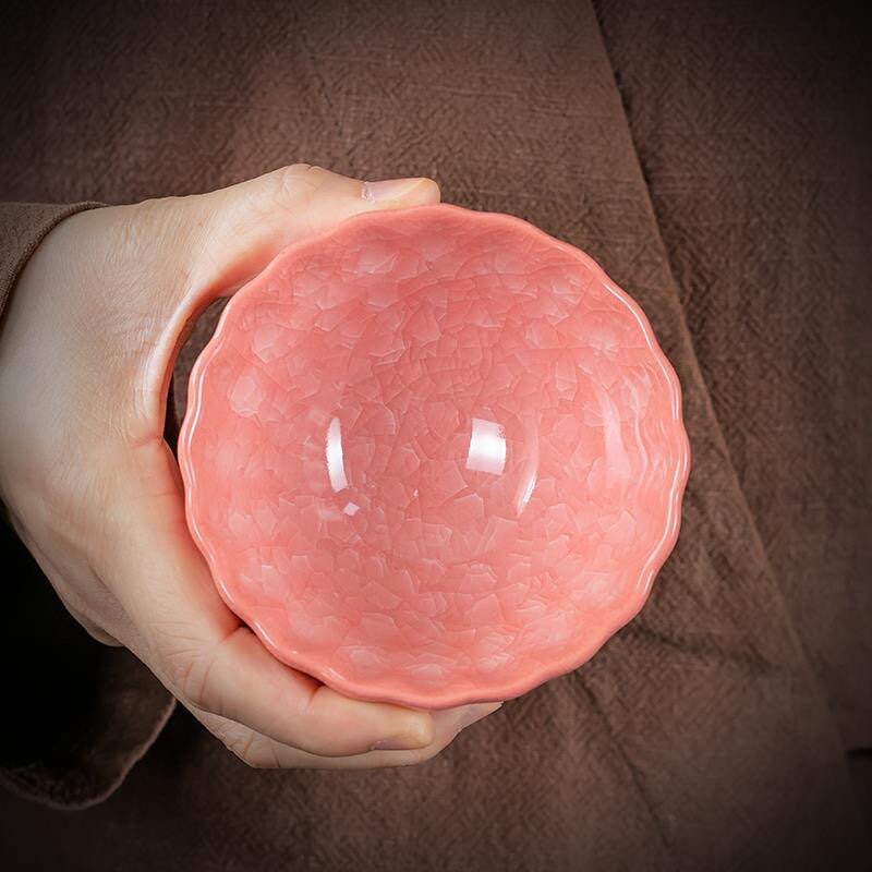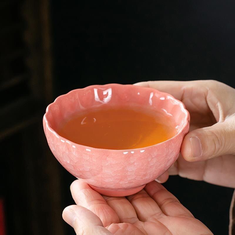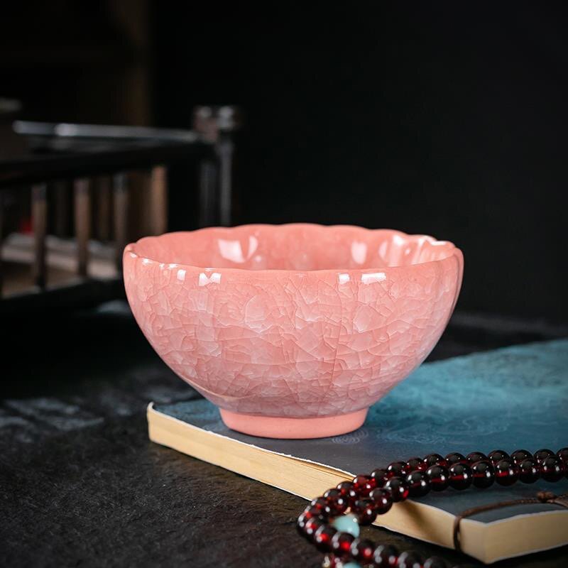 📚 粉冰裂茶杯主人杯女士高档个人专用茶盏窑变茶杯天目盏遇水化冰杯