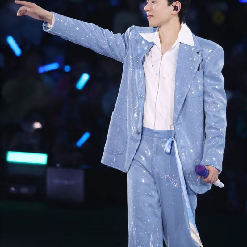📚 张杰明星同款亮片西装珠片绣高级西裤套装机械舞街舞团队演出服定