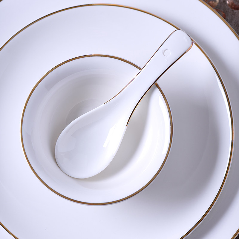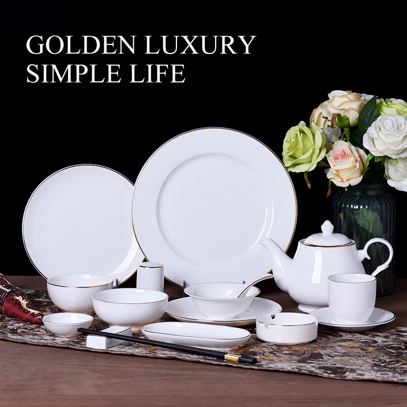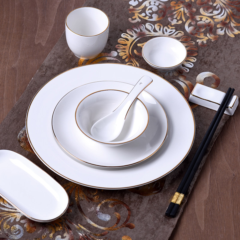📚 高档陶瓷酒店餐具摆台四件套饭店金边摆台金线摆台酒楼会所盘碗碟