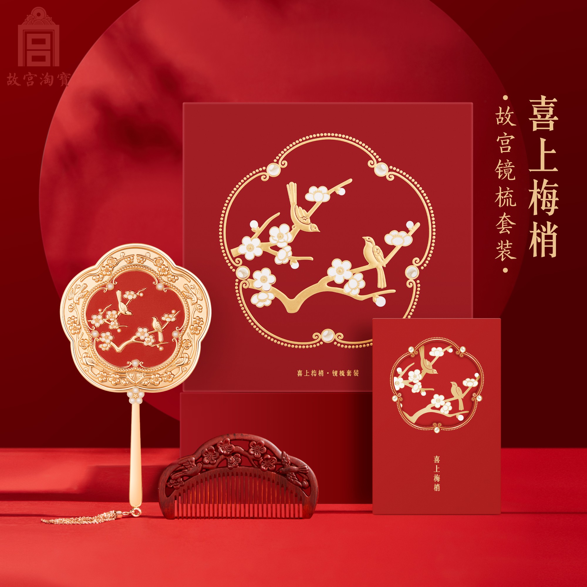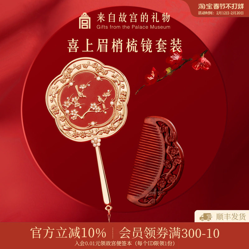 📚 故宫淘宝|喜上梅梢梳镜礼盒文创生日新婚订婚结婚礼物送新人新娘