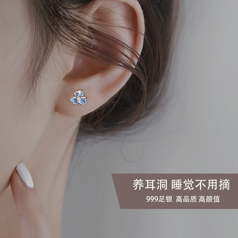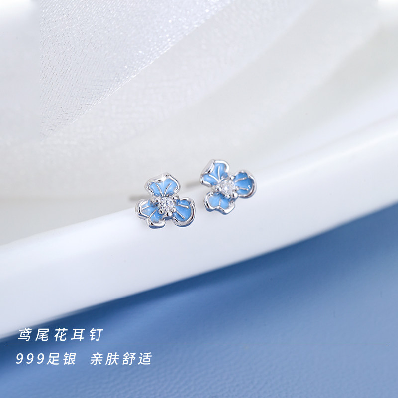 📚 Z小姐 S999足银蓝鸢尾花耳钉女气质高级花朵耳环耳饰2025新款爆款