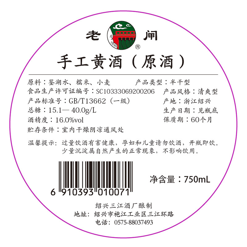 📚 绍兴特产黄酒老闸手工本色原酒750ml瓶装无焦糖色半干花雕加饭酒