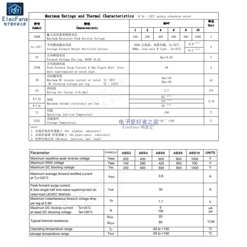 📚 (10个)贴片整流桥MB4S/MB6S/MB8S/MB10F/MB10S/ABS8/ABS10桥堆