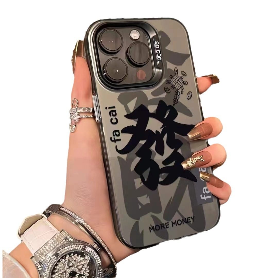 📚 适用于OPPO A5活力版A6PRO潮流RENO15黑彩银FINDX9国潮镭射IMD卡通文字防摔磨砂硬手机壳保护套批发
