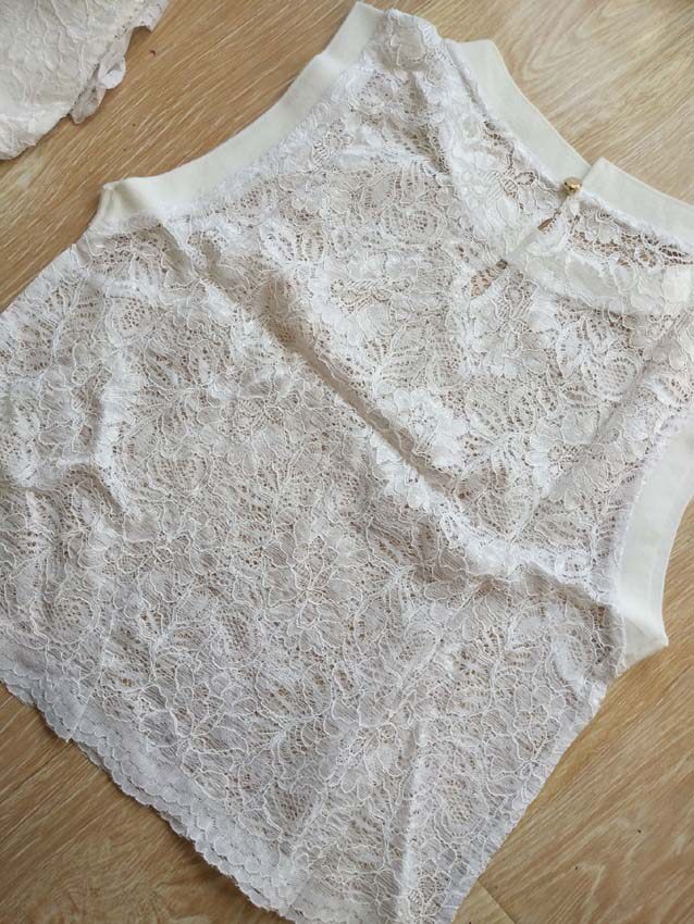 📚 夏特外贸原单蕾丝波浪边套头拉锁纯色修身上衣短裙套装cocodeal